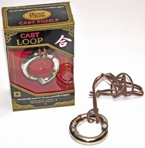 This delightful and intriguing chromed metal ring shaped puzzle comes apart into two halves. Clever winding of thepieces brings it back together in a ring. Ends of rings have small built-in magnet which holds puzzle together. Wear as an unusual neck pendant with the supplied cord. Think of it as puzzle jewelry. This puzzle is not too difficult. (Remember puzzle ratings are always subjective.) Rating by Manufacturer as a level 1 difficulty on a scale of 1 to 6. (Where level 1 is easier and level 6 most difficult. Part of a series of small, compact, tricky, metal brainteasers by Hanayama Puzzles of Japan.Recommended for ages 12 to 105 years. Read more...