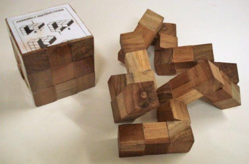 Linked cubes of wood to assemble into a larger 2 1/2 inch square cube. Fun, mind stimulating puzzle that will keep you entertained! Read more...