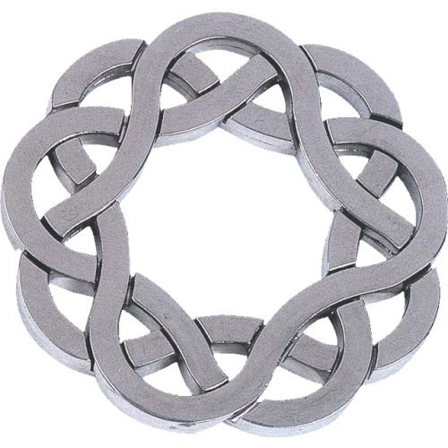 Take the 3 pieces apart and put them back together, that is the objective of this unique metal puzzle. A word from the designer: "Serhiy Grabarchuk is a famous Ukrainian puzzle designer who lives in Uzhgorod. The puzzle depicted on the piece of drawing that he sent me looked like a strange adornment weaved into a "coiffure"design. If you put a glass carefully onto the completing puzzle, it becomes, indeed, a coaster. Using this when serving drinks to guests will no doubt create stimulating conversation. Theme: "Coiffure"." Hanayama Co., Ltd.-2006 Read more...