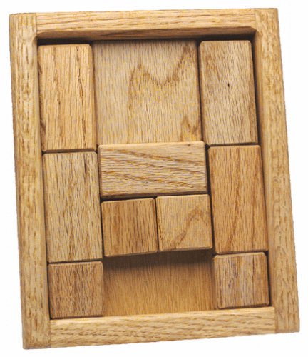 This mind-teasing Square Root puzzle stands out from the crowd for two reasons: first, it's difficult, requiring more than 80 moves to solve; second, it's big (7.5-inches-by-9-inches) and handsome, handcrafted from smooth, unpainted wood, backed with wine-colored felt. The object of the game is to maneuver the largest square out through the slot at the bottom--without removing, lifting, or turning any of the 10 pieces. Did I mention how difficult it is? Luckily, a Cheater's Map to Success is available separately from Square Root Games at an additional charge. --Rebecca Hughes