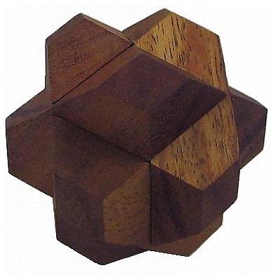 This star- like puzzle is a cluster of 6 wooden blocks. This brain teaser is made by careful carving of two of the surfaces of each block, so that the individual pieces can interlock. Even if you know the shape of the blocks, you will find that reassembling the cluster can be a very puzzling problem to tackle. Read more...
